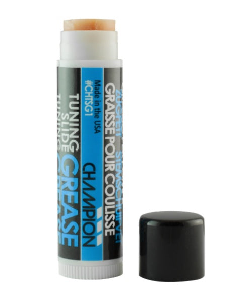 Fabricada con una mezcla de ingredientes naturales, inocuos e inodoros, y en un formato similar a un lápiz labial, la grasa Champion Tuning Slide Grease es fácil de aplicar con el aplicador giratorio. Su tapa hermética garantiza que la grasa permanezca bien protegida cuando no se utiliza.