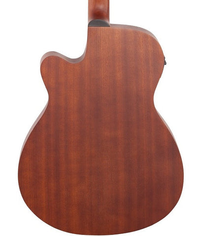 La Ibanez PC12MHEOPN Grand Concert cuenta con una tapa y cuerpo completamente de Sapele para brindarle un tono cálido y completo. El acabado natural de poro abierto agrega a las guitarras una estética natural y sutil, también contribuye al sonido del instrumento. La electrónica incluye una pastilla Ibanez con preamplificador AEQ-2T y afinador incorporado. También cuenta con una roseta tradicional, un diapasón y puente de Nandu Wood con pines de puente Ibanez Advantage para mejorar la estabilidad de afinación.