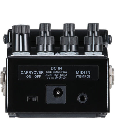 • CARACTERISTICAS: delay rack Roland SDE-3000 en un pedal compacto BOSS, Modulación característica con diales Rate y Depth independientes, Tiempo de delay máximo ajustable: 800 ms (mono/estéreo) o 1.600 ms (mono), delay estéreo: panorámico o estéreo independiente, Entrada MIDI TRS para sincronizar con señales de reloj MIDI externo