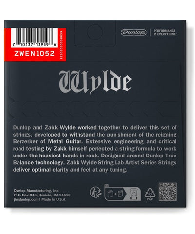 Dunlop y Zakk Wylde colaboraron para crear este juego de cuerdas, desarrollado para resistir el rigor del Berzerker reinante de la guitarra metal. La ingeniería exhaustiva y las rigurosas pruebas de carretera realizadas por el propio Zakk perfeccionaron una fórmula de cuerdas que funciona incluso con las manos más pesadas del rock. Diseñadas con la tecnología Dunlop True Balance, las cuerdas Zakk Wylde String Lab Artist Series ofrecen una claridad y una sensación óptimas en cualquier afinación.