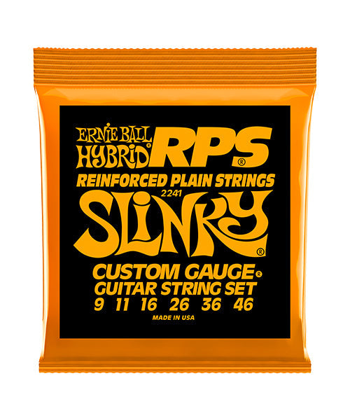 Las cuerdas "RPS Hybrid Slinky" cuentan con un amarre patentado de latón denominado por sus siglas en ingles RPS (Reinforced Plane Strings) alrededor del extremo del arillo de las cuerdas lisas para reducir el deslizamiento, fatiga o ruptura, prolongando su tiempo de vida y afinación. Este set es recomendable para su uso en guitarras de puente fijo.