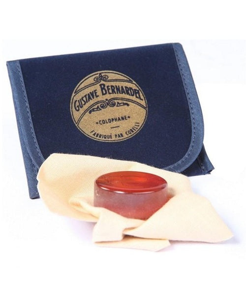 Colofonia Gustave Bernardel está hecha de resina natural de calidad, seleccionada de altos pinos, utilizando el ‘’galipot’’ (primera savia del árbol). Los componentes de la receta pasan un control muy estricto. De uso para violinistas, violistas como violonchelistas. Perfectamente homogénea, que no se pega ni hace polvo. El ataque del arco es muy claro y preciso. El sonido es fácil de producir y controlado.