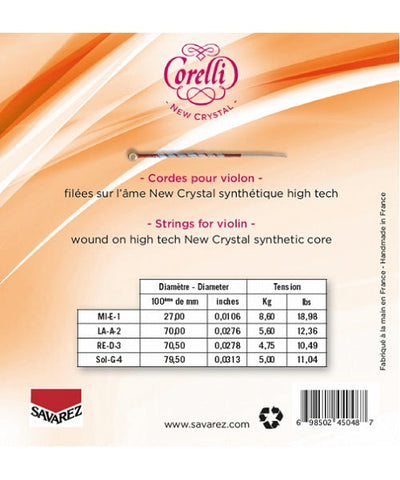 La encordadura Savarez Corelli "New Crystal" para violín es la innovación consiste en el descubrimiento de un nylon muy novedoso que evita desgastes habituales. Las mejoras abarcan la calidad y el volumen del sonido, más rico pero elegante y clásico, y la facilidad de ejecución debido a la mejora de la respuesta y la proyección.